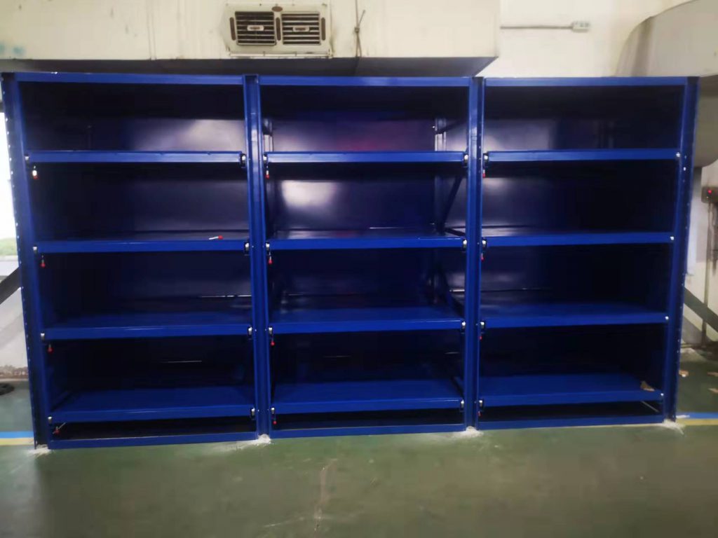 第一用途類似于工具柜,但是工具柜承載能力達(dá)不到,工具柜的導(dǎo)軌承受最大的重量在10-100KG左右,封閉式模具架承載能力達(dá)到1000KG以上;