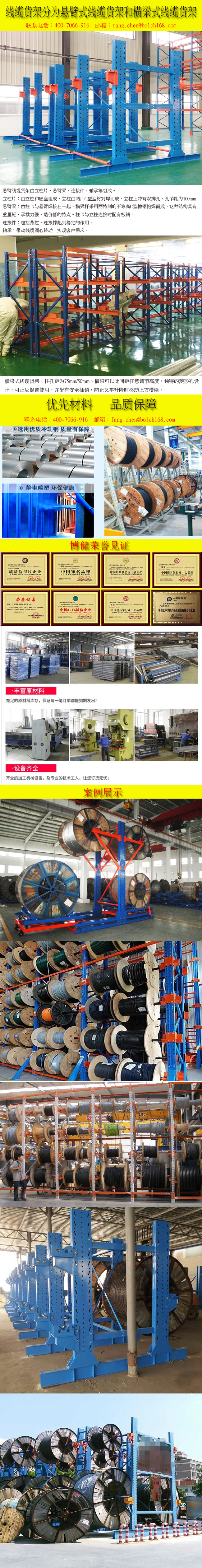 線纜貨架是倉(cāng)儲(chǔ)貨架的一種,它不同于其他貨架,需要根據(jù)客戶公司的線纜卷輪來(lái)仔細(xì)設(shè)計(jì),屬于設(shè)計(jì)定做一類,它的針對(duì)性很強(qiáng)!便于直接從庫(kù)存中取線纜,從而無(wú)需移動(dòng)線圈。該系統(tǒng)可調(diào)節(jié),只需改變掛鉤位置即可改變線纜的儲(chǔ)存布局。獨(dú)特的設(shè)計(jì)使得在卷電纜的時(shí)候,電纜滾軸不會(huì)脫落。線纜架用于存放電線電纜等特定儲(chǔ)存需求的產(chǎn)品,主要用J型鉤連接,便于直接從庫(kù)存中取線纜,從而無(wú)需移動(dòng)線圈。該系統(tǒng)可調(diào)節(jié),只需改變掛鉤位置即可改變線纜的儲(chǔ)存布局。獨(dú)特的設(shè)計(jì)使得在卷電纜的時(shí)候,電纜滾軸不會(huì)脫落??梢葬槍?duì)不同的客戶進(jìn)行量身定制,滿足客戶特定規(guī)格的需求。又可叫做電纜放線架,線盤放線架,電纜盤軸架放線架