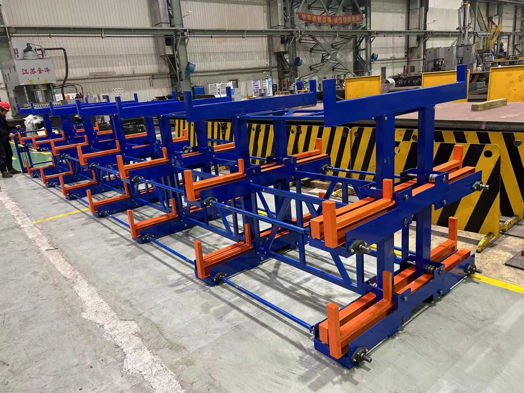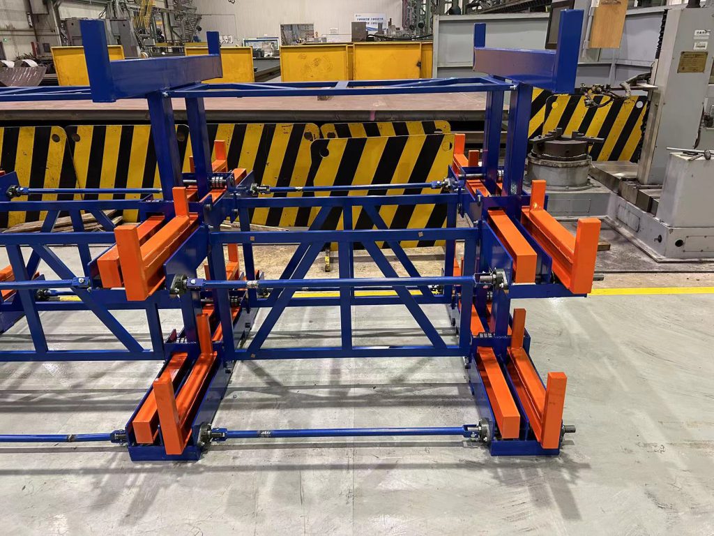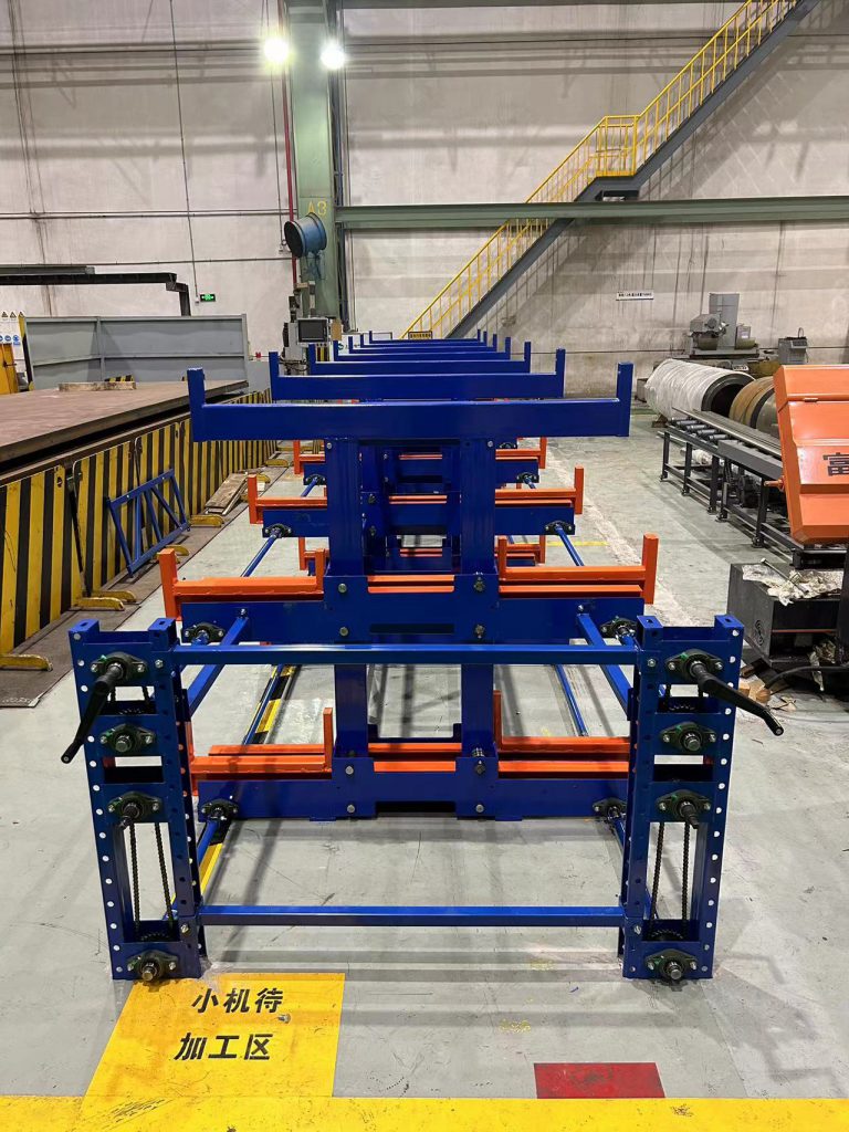2023年4月23日,上海電器鈑金車間使用手搖模具架,貨架總高度1500mm,雙向伸縮;